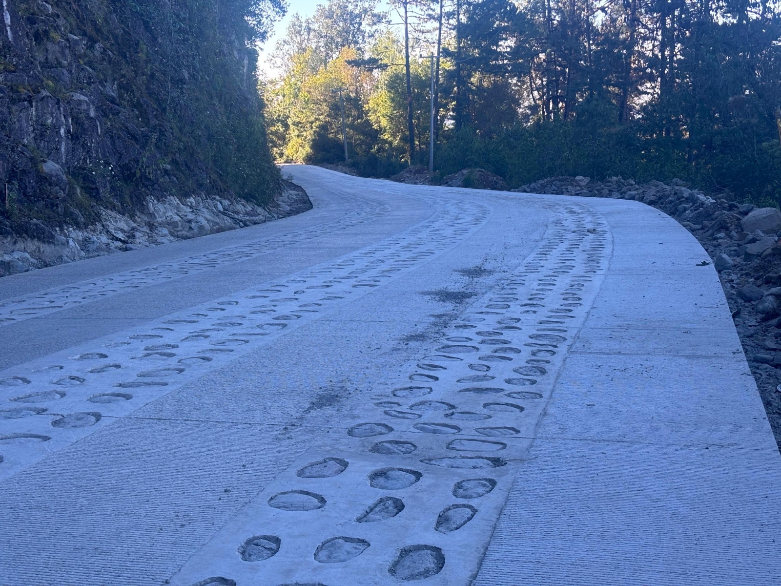 Los trabajos que se realizan son, excavación en corte, extracción de derrumbes y terraplén, cunetas de sección triangular, lavaderos, bordillos y limpieza de alcantarillas, base hidráulica, losa de concreto ciclópeo y losa de concreto hidráulico.