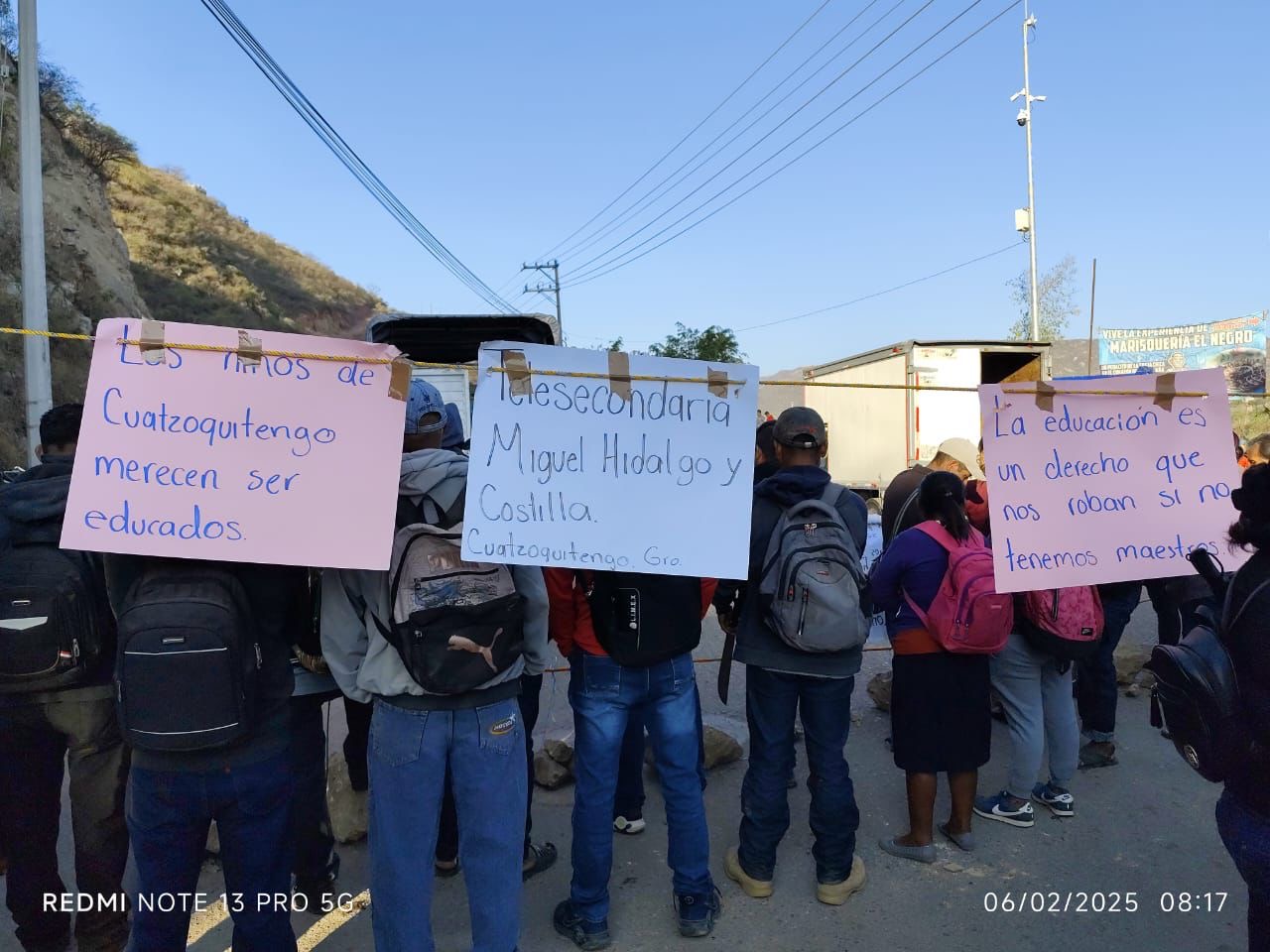 Padres de familia de la zona escolar 078 de telesecundarias bloquean la carretera Tlapa-Chilpancingo y Tlapa-Marquelia para exigir maestros.