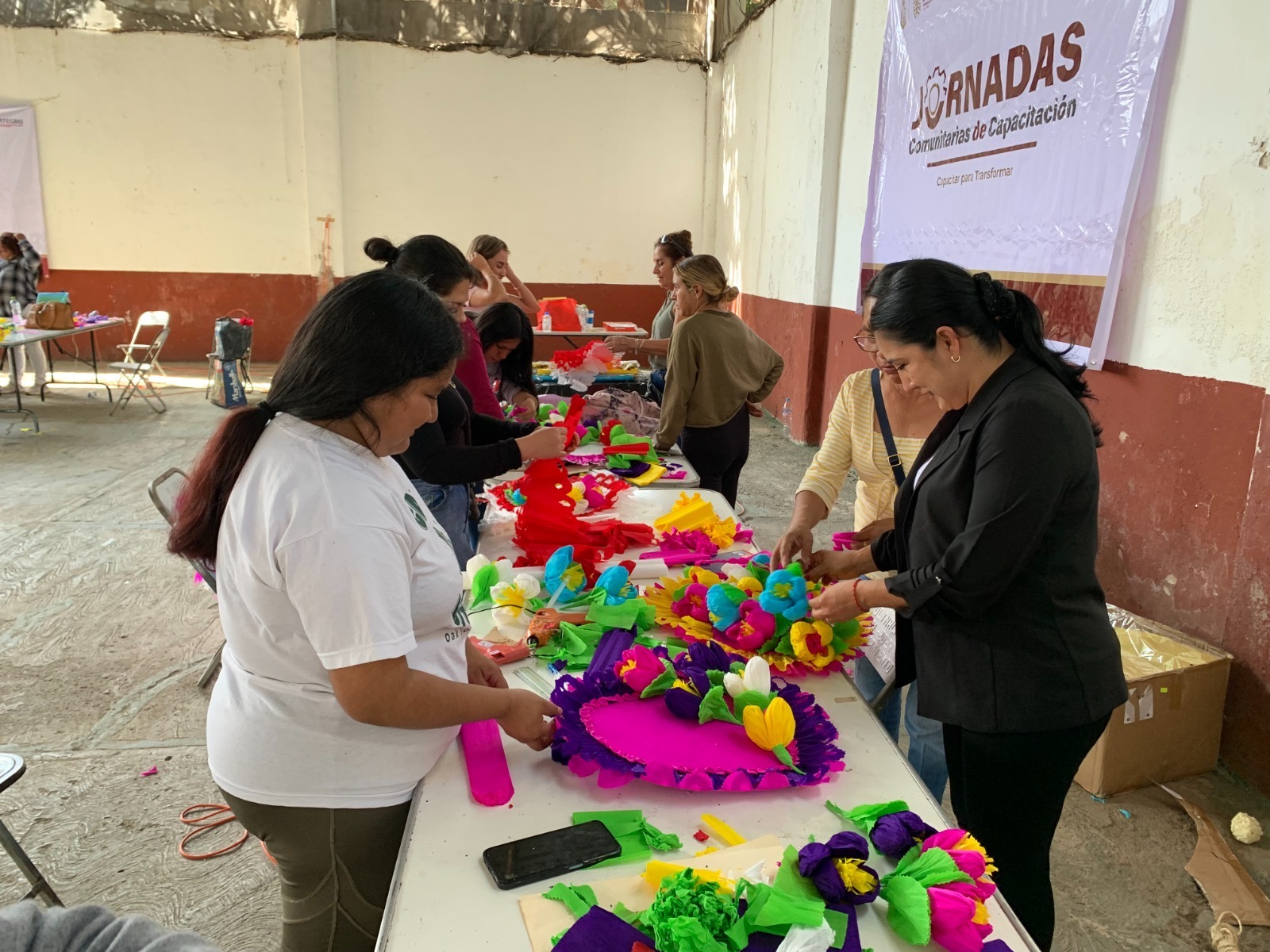 Entre los cursos destacan elaboración de cortinas y flores de papel, piñatas de tambor, primeros auxilios, preparación de destilado de agave con diferentes sabores, maquillaje, elaboración de flores de listón, globoflexia, elaboración de manualidades con papel picado, aplicación y decoración de uñas acrílicas.