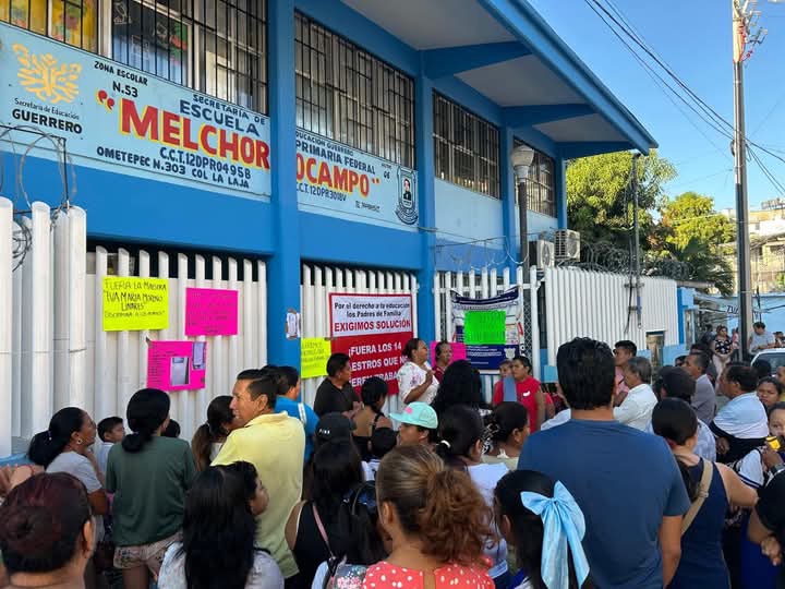Padres de familia de la escuela primaria “Melchor Ocampo”, ubicada en la colonia La Laja, tomaron el plantel como protesta a sus exigencias para destituir a 14 maestros de este plantel educativo.