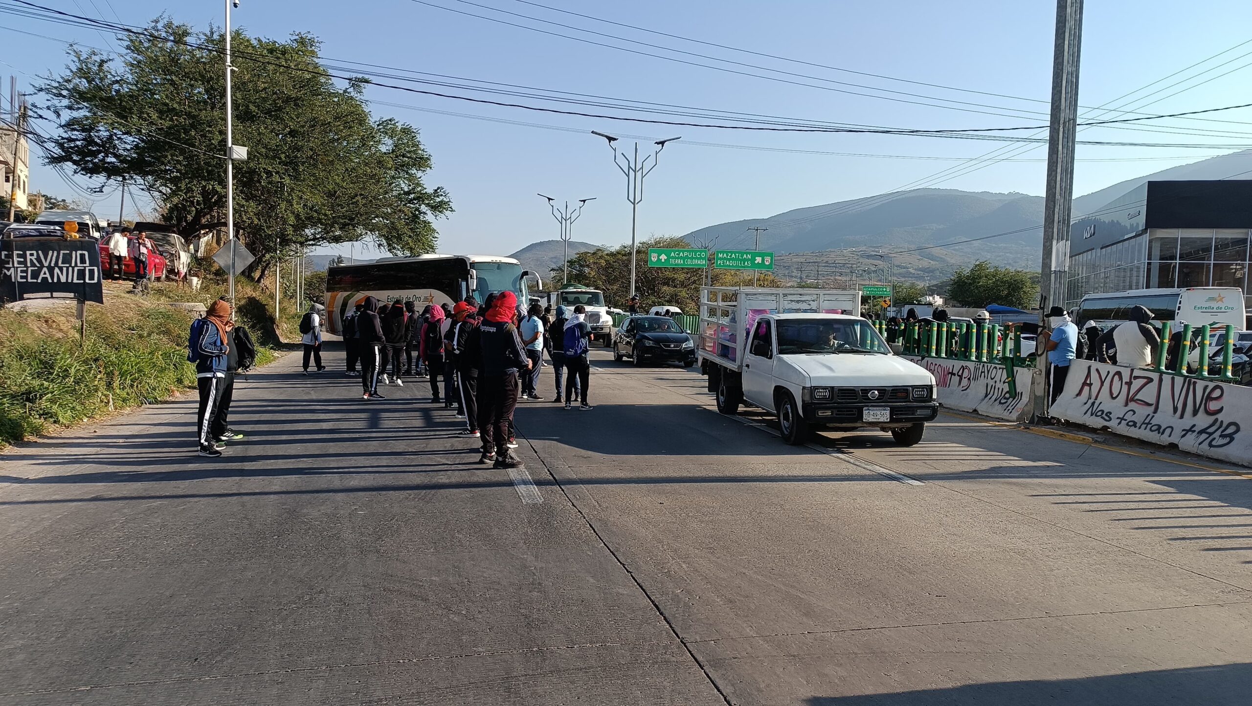 Bloquean de manera intermitente alumnos de Ayotzinapa, la Autopista del Sol