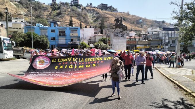 La dirigente de esa sección 18, Adela Radilla, comentó en la marcha que piden solución inmediata a su pliego petitorio, entre lo que destaca, el respeto a la autonomía de la sección 18.