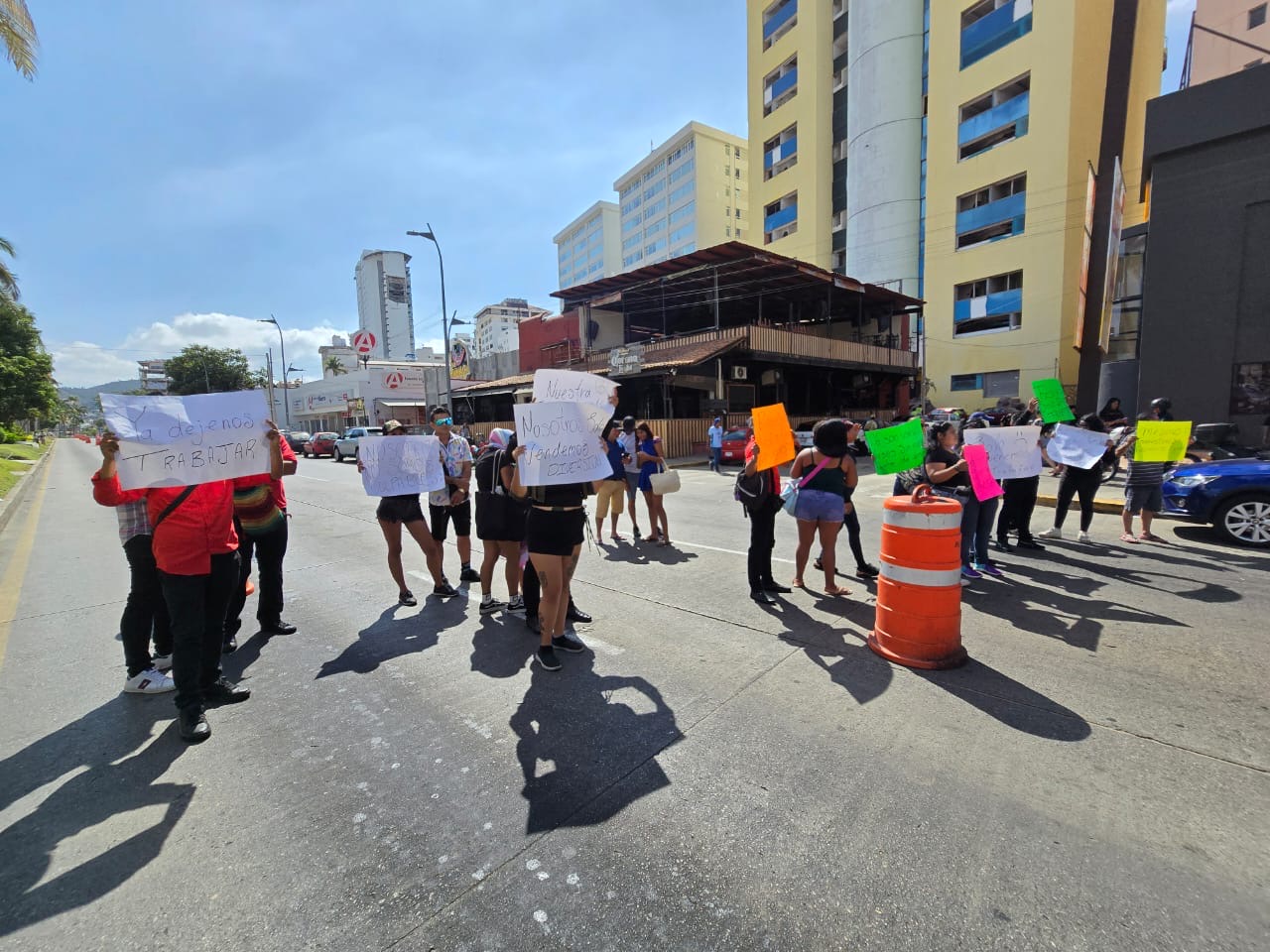 Trabajadores del bar La Norteña bloquearon está mañana la Costera a la altura de este establecimiento ubicado enfrente de Galerias Acapulco, pidiendo a las autoridades su reapertura ya que dicen que se encuentran sin su fuente de empleo.