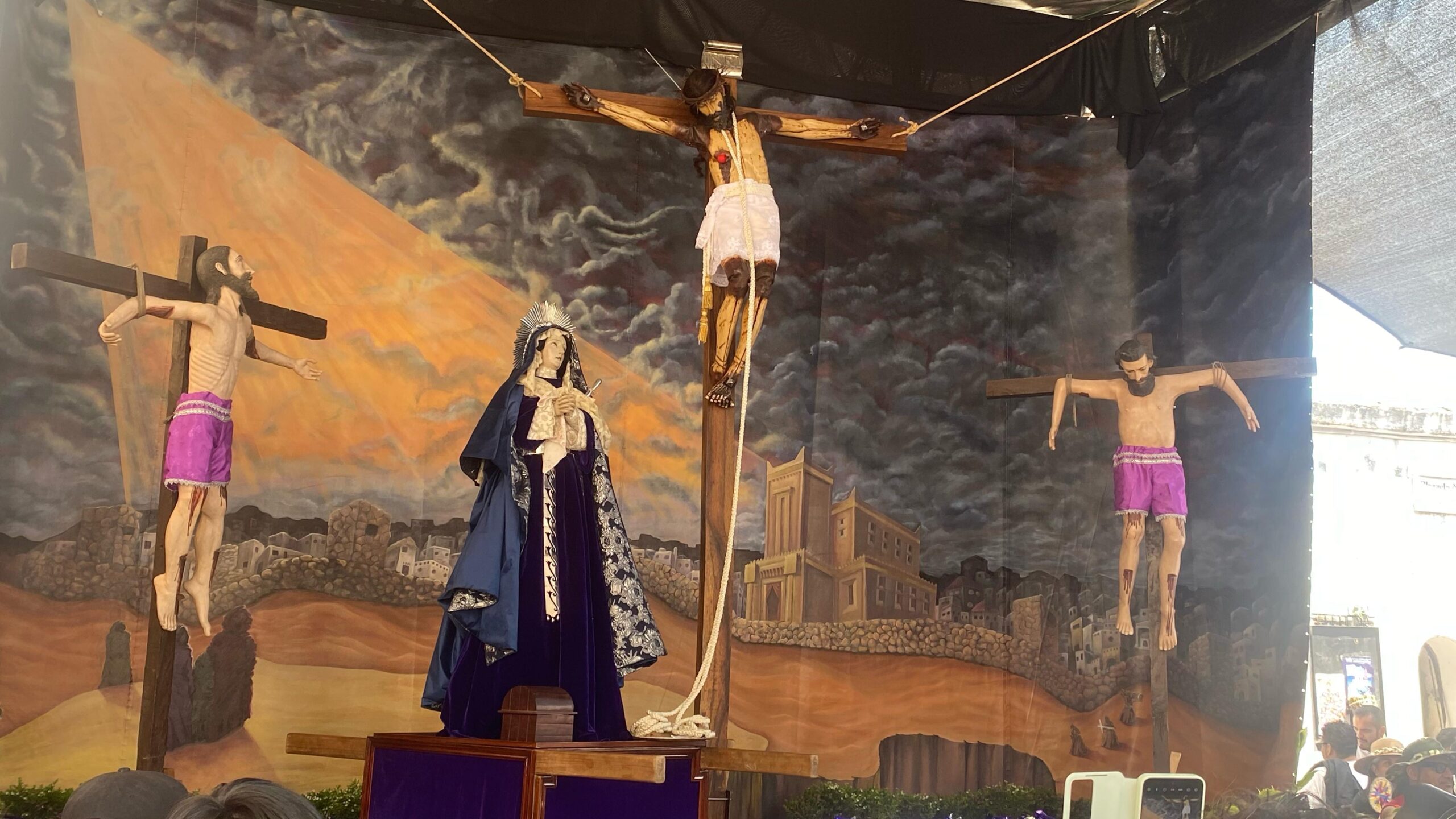 El nazareno fue crucificado en monte Calvario, lugar escenificado en el ex convento de San Bernardino en esta ciudad colonial.