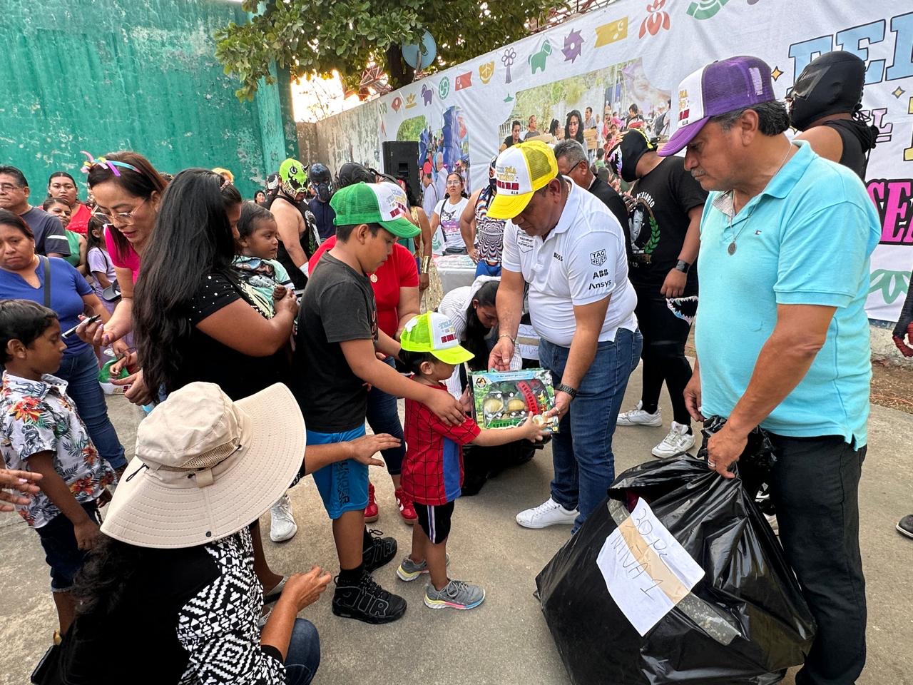 En la cancha de usos múltiples de la Unidad Deportiva Jorge Campos Navarrete, papás, mamás, niñas y niños, se divirtieron con la entrega de juguetes, pastel, aguas frescas, juegos inflables y mecánicos, donde disfrutaron y rieron de manera sana.