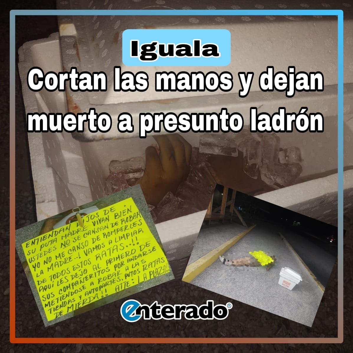 Chilpancingo, Gro., miércoles 30 de abril del 2025.- Un hombre presuntamente ladrón de tiendas y autopartes, fue hallado asesinado, con huellas de tortura y las manos cortadas en la ciudad de Iguala, la cual se ubica en la región norte de Guerrero.