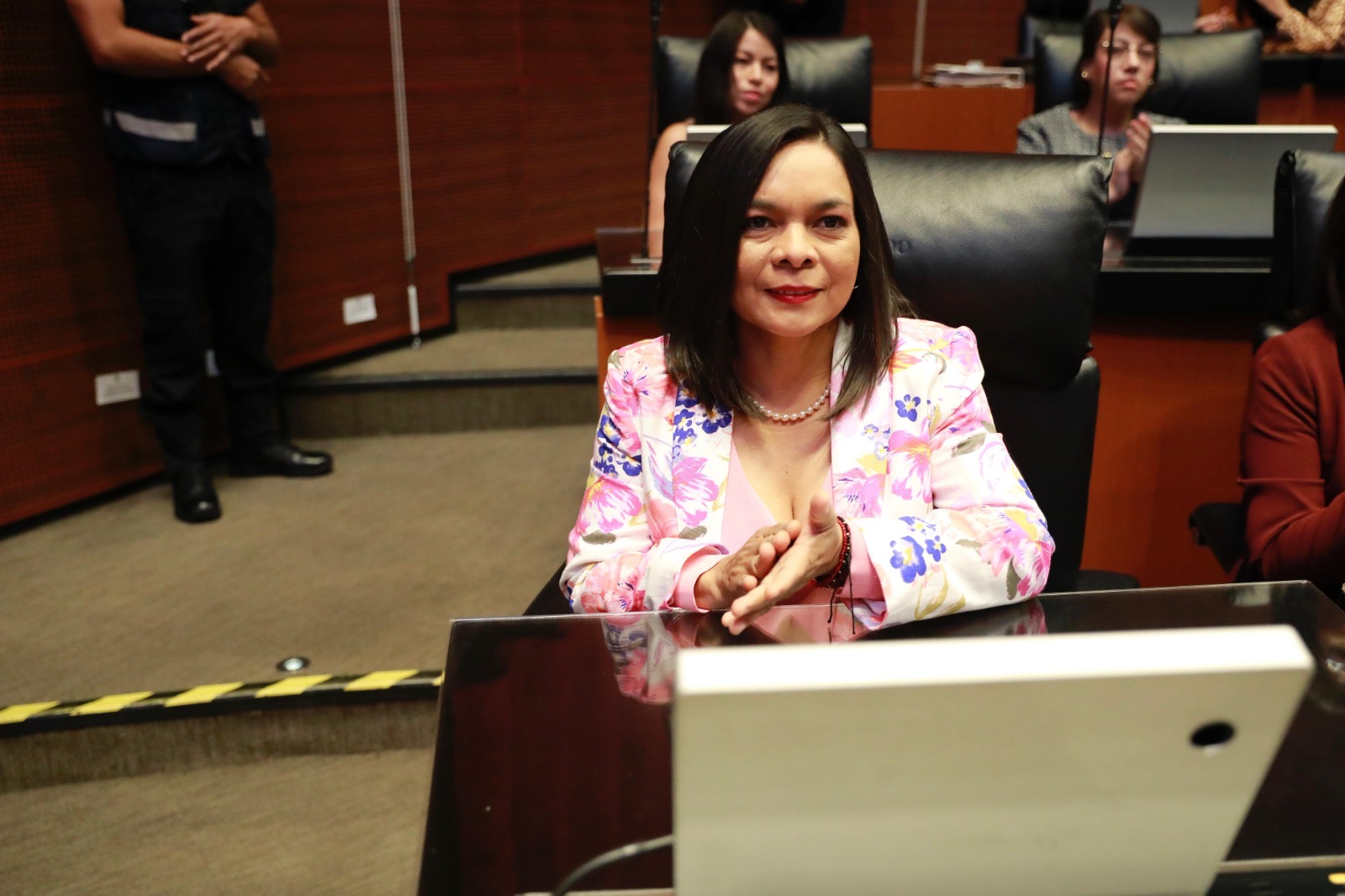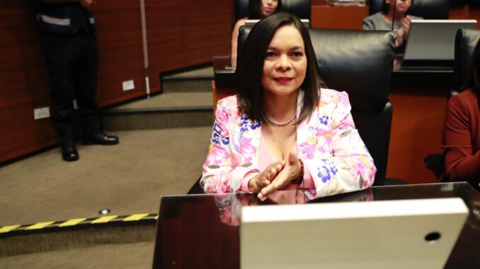 La senadora respaldó el posicionamiento del presidente de la Junta de Coordinación Política, Adán Augusto López Hernández, quien presentó una propuesta en contra de “la arbitraria y unilateral” imposición de aranceles por parte del gobierno de Estados Unidos.