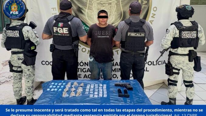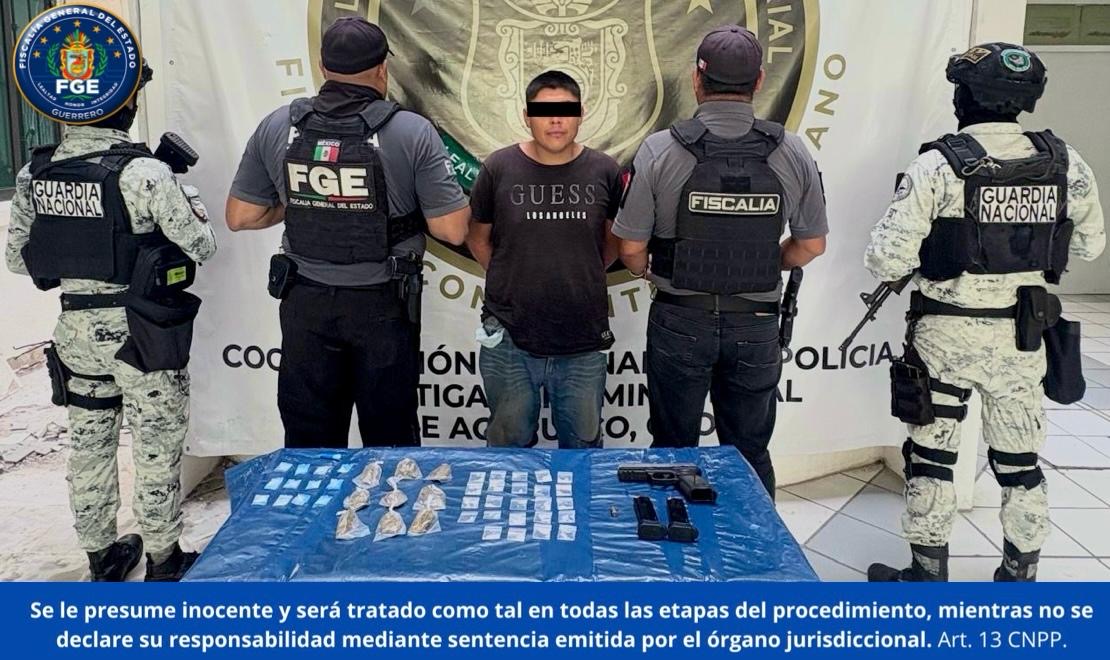 Chilpancingo, Gro., a 13 de mayo de 2025.— La Fiscalía General del Estado de Guerrero (FGE Guerrero) informa que, en coordinación con la Secretaría de la Defensa Nacional (DEFENSA), la Guardia Nacional (GN), la Secretaría de Seguridad y Protección Ciudadana (SSPC) y la Secretaría de Seguridad Pública del Estado de Guerrero (SSPGro), detuvo en flagrancia a Francisco “N” en la localidad de El Coacoyul, municipio de San Marcos.