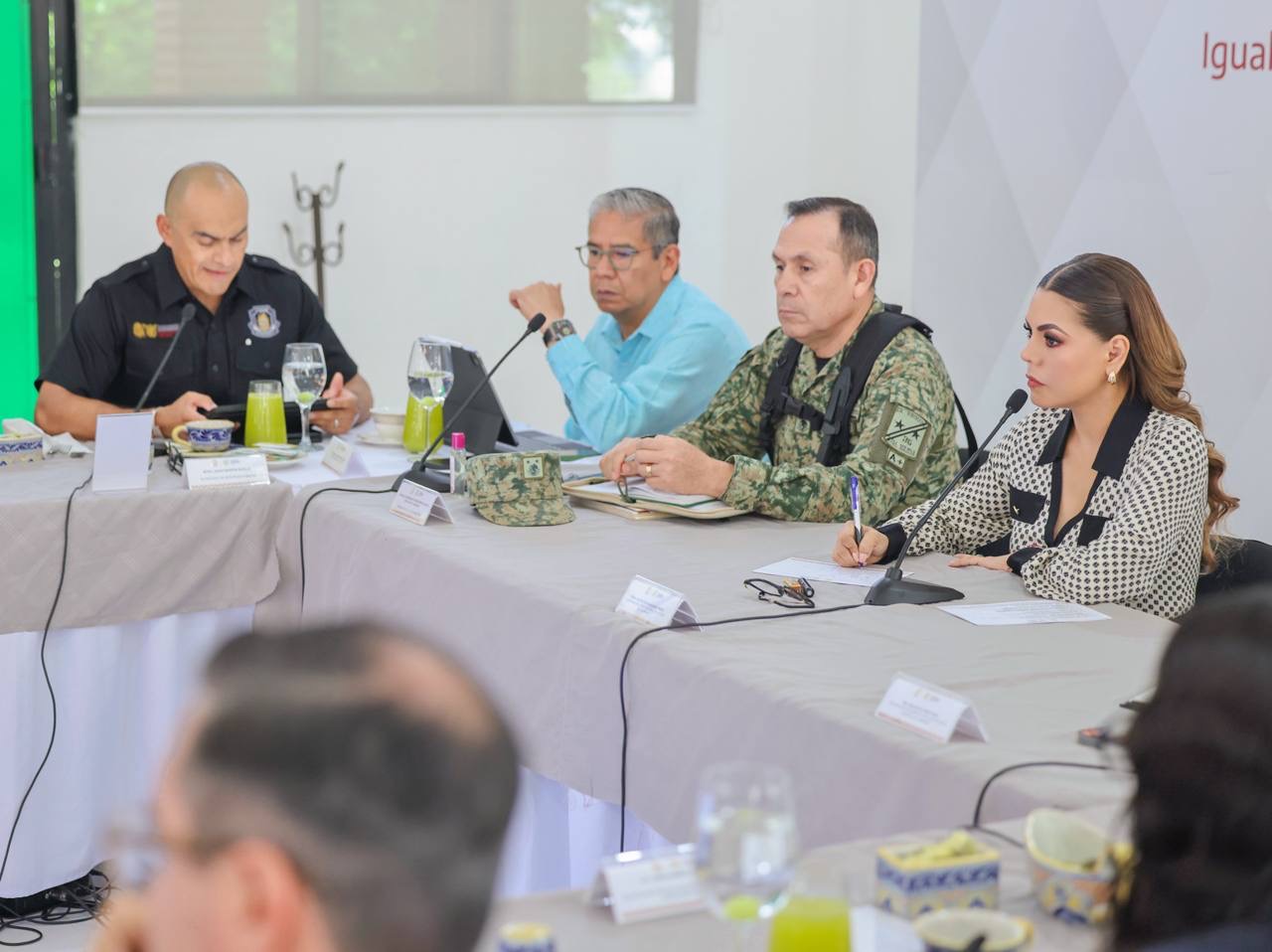 Iguala, Gro., 8 de julio de 2025.- Con el objetivo de reforzar las acciones en materia de seguridad y dar seguimiento puntual a la incidencia delictiva, la gobernadora Evelyn Salgado Pineda encabezó en las instalaciones del 27 Batallón de Infantería en Iguala, los trabajos de la Mesa de Coordinación para la Construcción de la Paz, con presidentas y presidentes municipales de la región Norte de Guerrero.