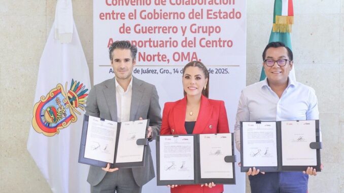 Con el propósito de fortalecer la inversión en materia de conectividad aérea, la gobernadora Evelyn Salgado Pineda y el director general del Grupo Aeroportuario OMA, Ricardo Dueñas Espriú, firmaron un convenio de colaboración para detonar y promover la conectividad de los aeropuertos de Acapulco y Zihuatanejo, la búsqueda de nuevas rutas y la modernización de las instalaciones, con una inversión de más de mil millones de pesos en los próximos cinco años.