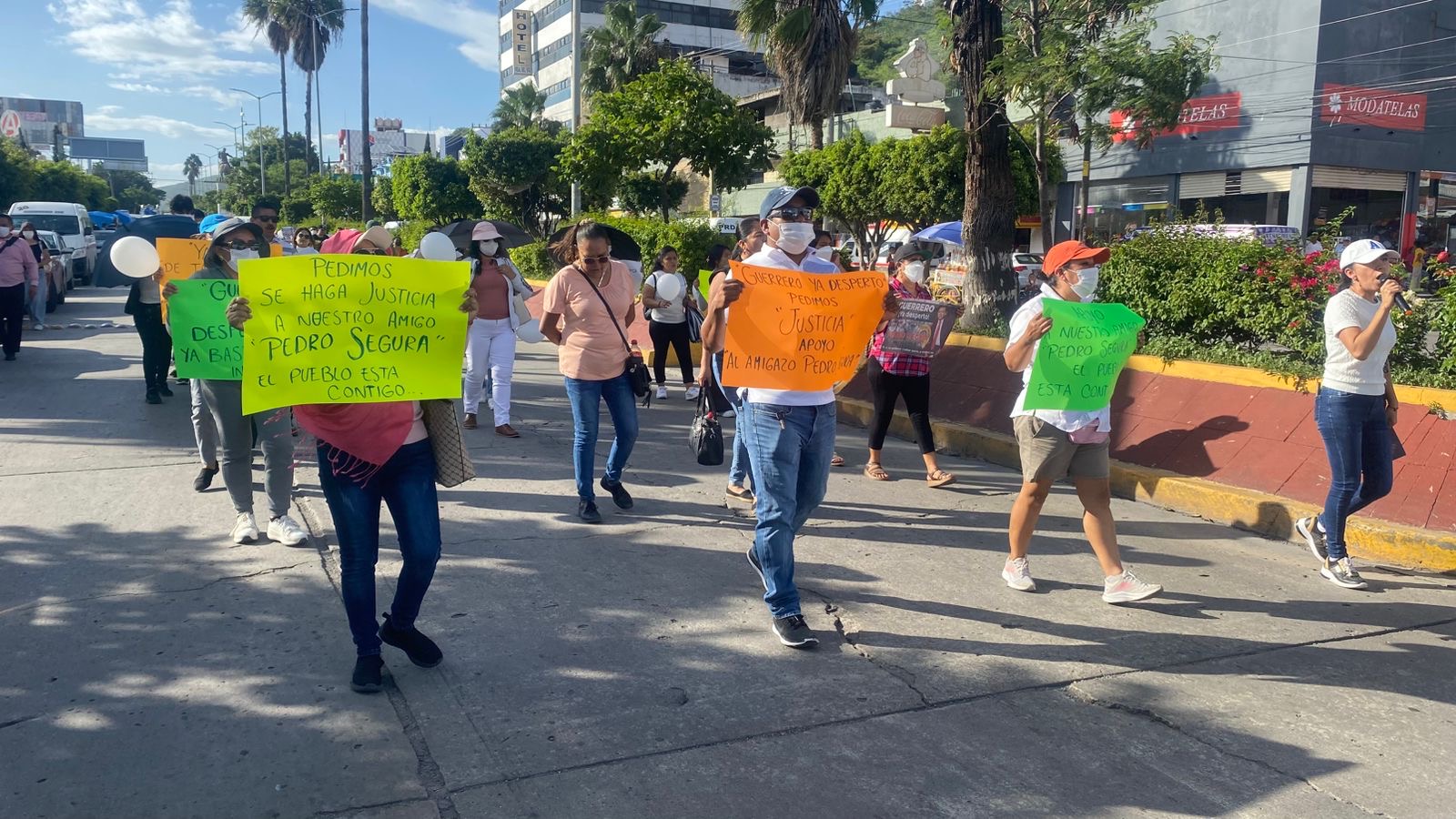 Chilpancingo, Gro., viernes 15 de agosto del 2025.- No más de 100 personas marcharon para pedir la liberación de Pedro Segura Valladares en calles y avenidas de Chilpancingo.