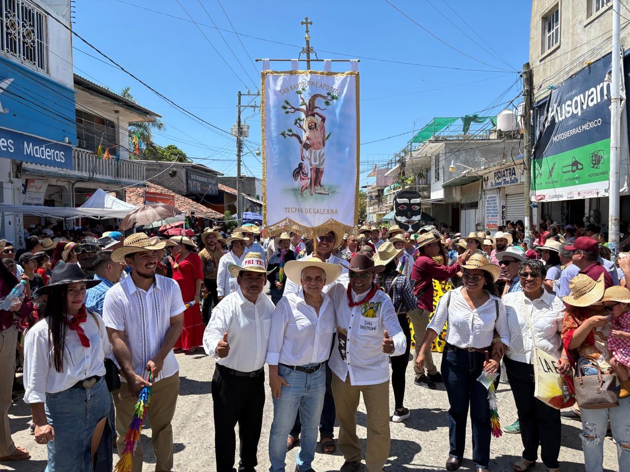 Tecpan de Galeana a 24 de agosto de 2025. El coordinador del Grupo Parlamentario del PRI en el Senado de la República, Manuel Añorve Baños, asistió al desfile cultural en honor a San Bartolomé Apóstol, santo patrono de este municipio de la Costa Grande del estado.