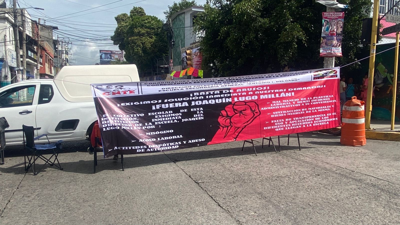 La CETEG exige la salida de Lugo Millán y responsabiliza a la Secretaría de Educación Guerrero, encabezada por Ricardo Castillo Peña, de resolver la situación.