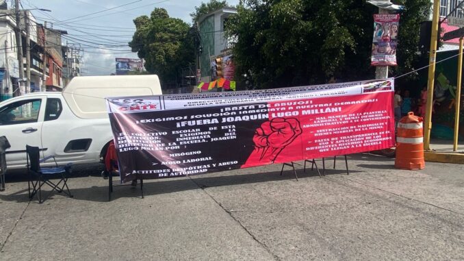 La protesta magisterial busca visibilizar las presuntas anomalías en la gestión del plantel y garantizar un trato digno para los docentes.