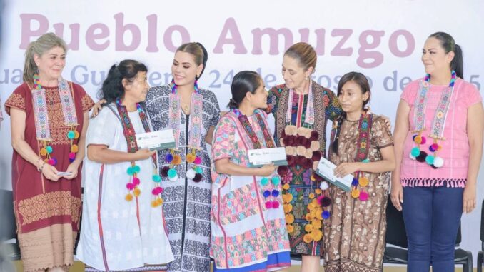 Sheinbaum y Evelyn entregan créditos a la palabra a mujeres amuzgas para impulsar la comercialización de huipiles