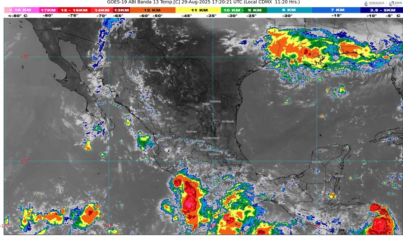 Están condiciones climáticas serán generadas por un Canal de Baja Presión que se extiende al norte del estado y por el paso de la Onda Tropical Número 27 frente a las costas de Guerrero, originando el ingreso Aire Marítimo Tropical del Océano Pacífico.