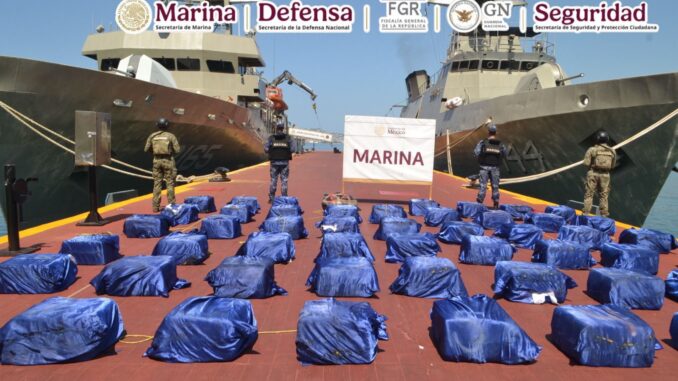Como parte de las acciones para impedir que sustancias ilícitas lleguen a las calles, en una operación en la mar, frente a costas de Guerrero, elementos de la Secretaría de Marina (Semar) a través de la Armada México en funciones de Guardia Costera,como parte del Gabinete de seguridad que está integrado por las Secretarías de la Defensa Nacional (Defensa), de Seguridad y Protección Ciudadana (SSPC), Guardia Nacional (GN) y Fiscalía General de la República (FGR), aseguraronaproximadamente 1,600 kilos de cocaína en mar abierto, al suroeste de Acapulco, Guerrero.