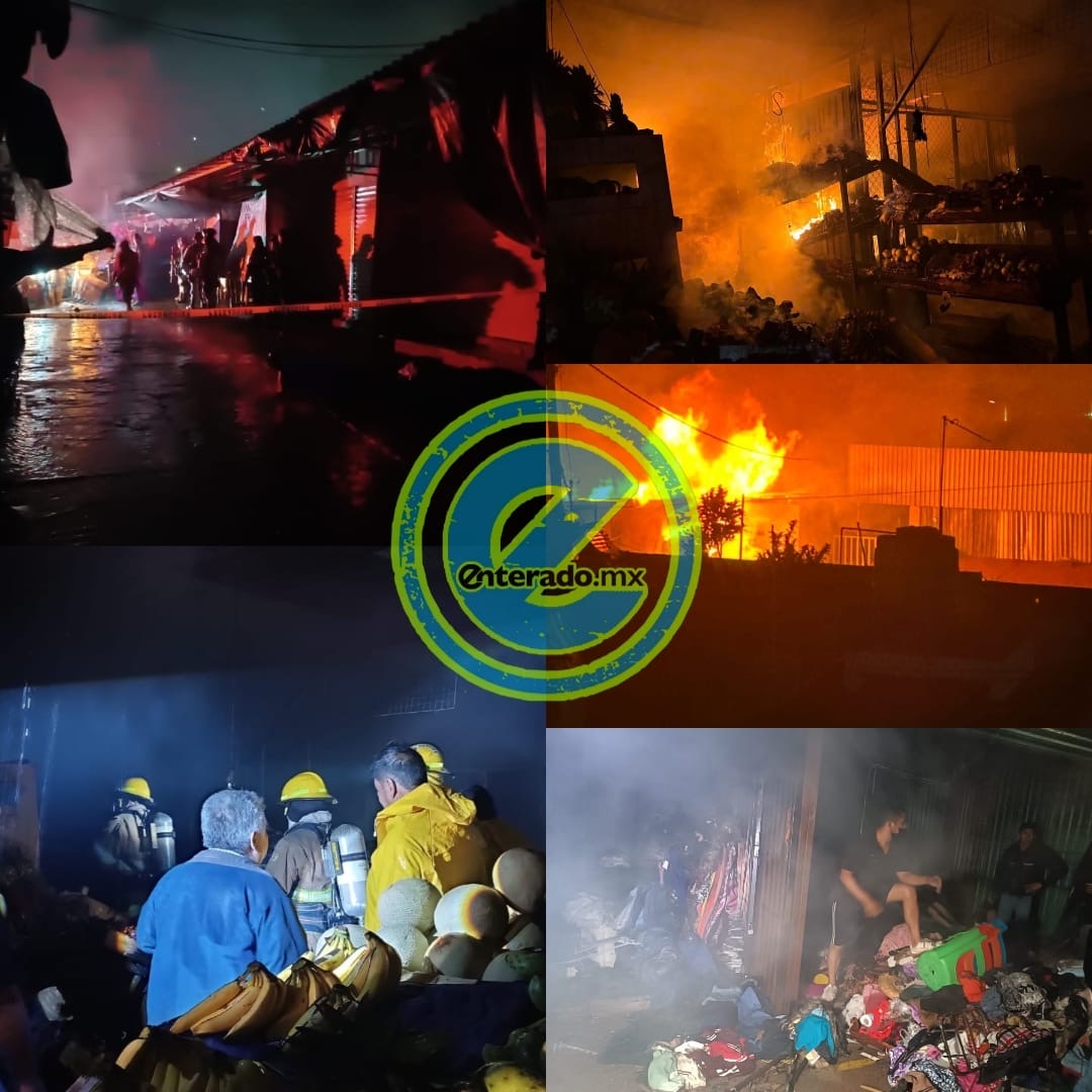 Al lugar arribó el Heroico Cuerpo de Bomberos, sin embargo se habían consumido por las llamas 5 puestos de ropa y 2 de fruta, pero se evitó la propagación del fuego a más negocios.