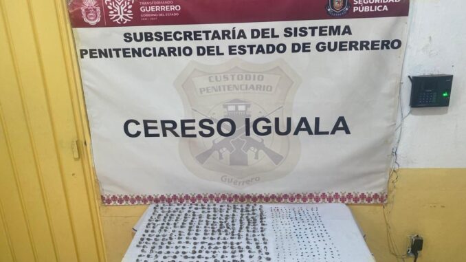 Iguala, Guerrero, a 10 de septiembre de 2025.- Como parte de las acciones para mantener el orden, la disciplina, la seguridad y gobernabilidad en los Centros de Reinserción Social del estado, elementos del Sistema Penitenciario Estatal aseguraron presunta droga en el CERESO de Iguala.