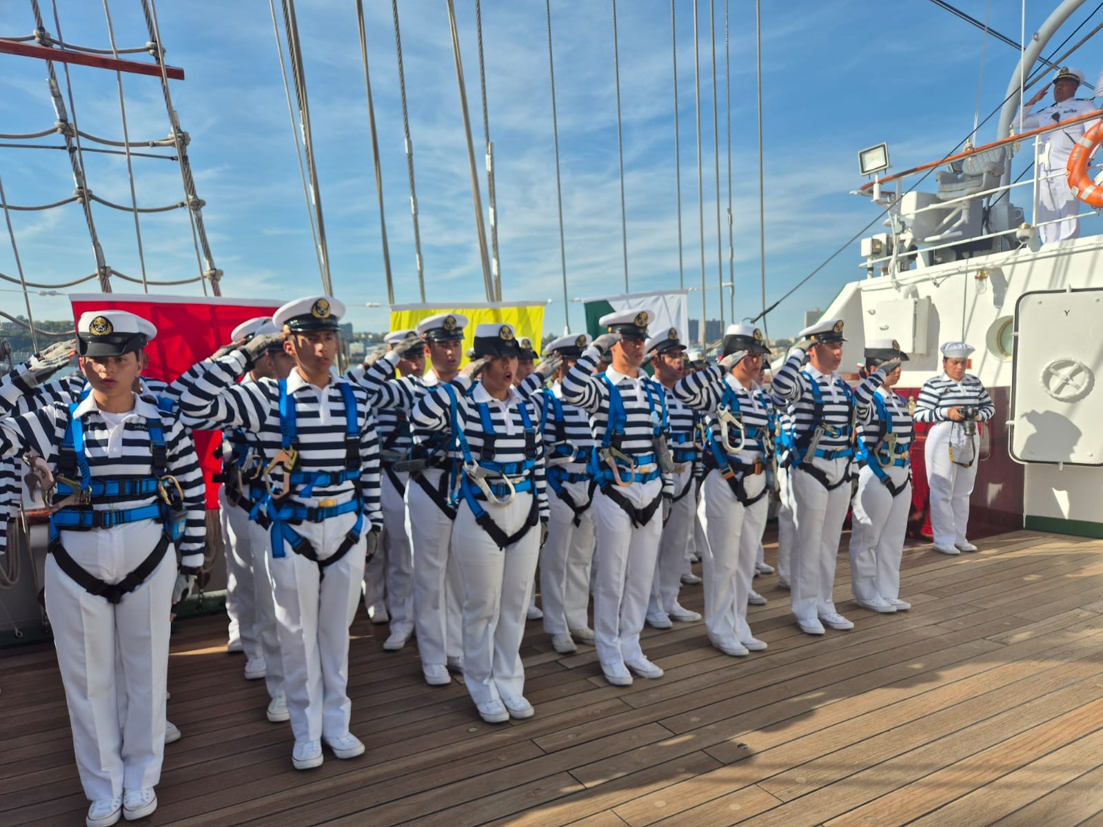 Para lo anterior, se dio lectura al parte del zarpe, a cargo del Comandante del buque, en el que informó el zarpe de: Seis Capitanes, 37 Oficiales, 166 Cadetes, 66 Clases y Marinería; exhortando a la tripulación a seguir formando a los futuros oficiales de la Armada de México, llevando el mensaje de paz y buena voluntad del pueblo mexicano a los mares del mundo.