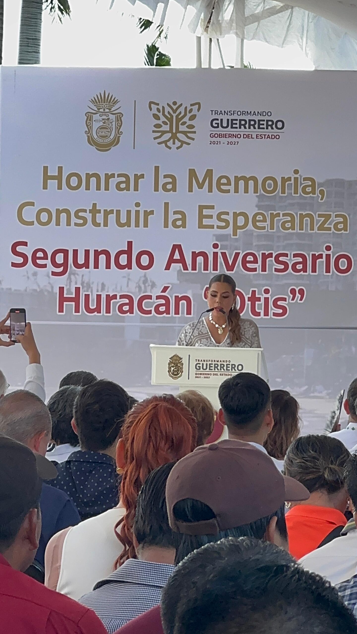 La gobernadora de Guerrero, Evelyn Salgado Pineda, encabezó la conmemoración por el segundo aniversario del impacto del huracán Otis en Acapulco, un fenómeno que provocó la destrucción de miles de viviendas y atractivos turísticos.