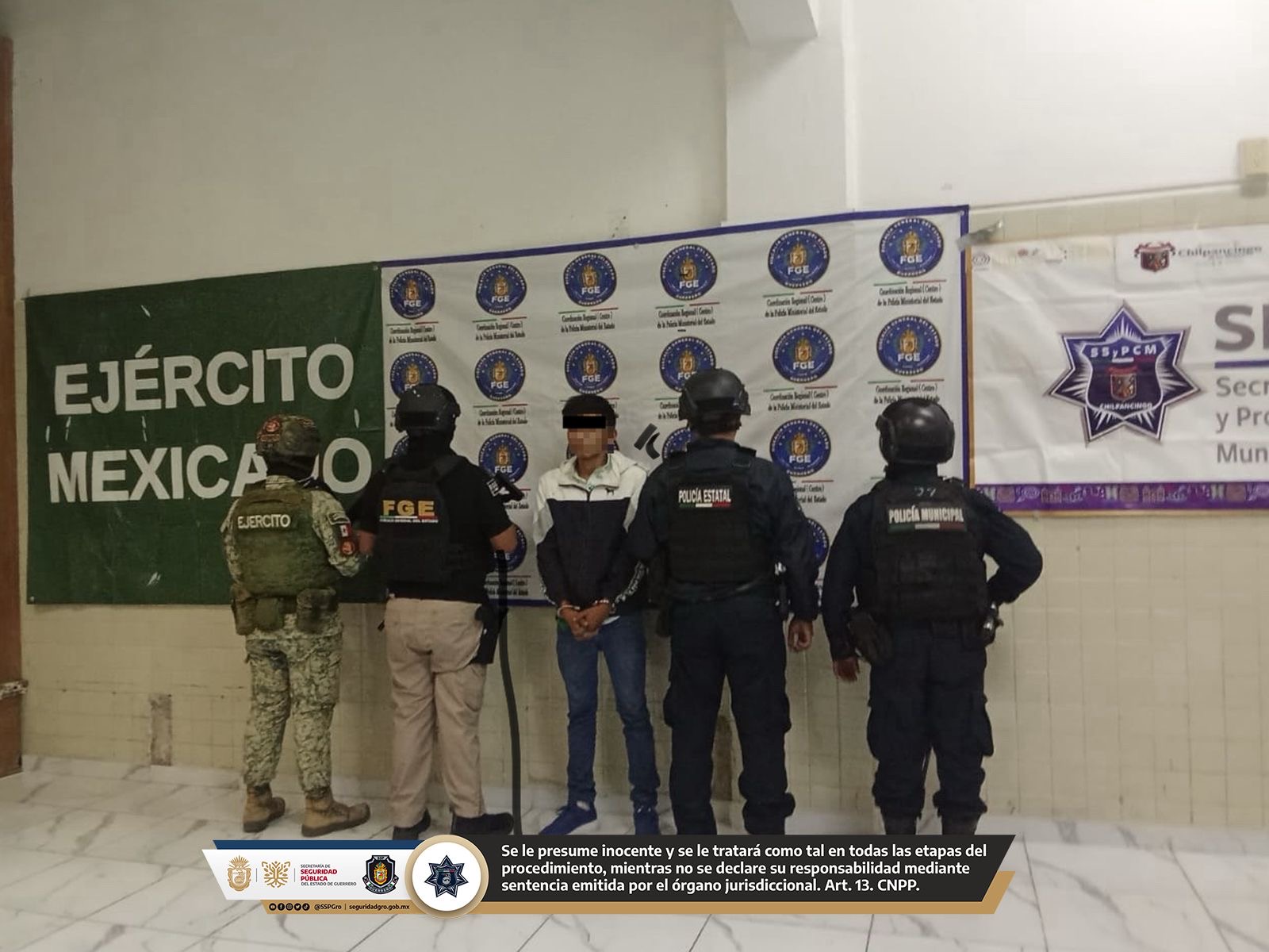 Chilpancingo, Guerrero, a 27 de octubre de 2025. Derivado del reforzamiento de la seguridad en las calles, colonias y lugares de mayor afluencia de Chilpancingo, fuerzas de seguridad detuvieron a un hombre en posesión de un arma de fuego, así como de una cuatrimoto que había sido robada con violencia, en la colonia Omiltemi.