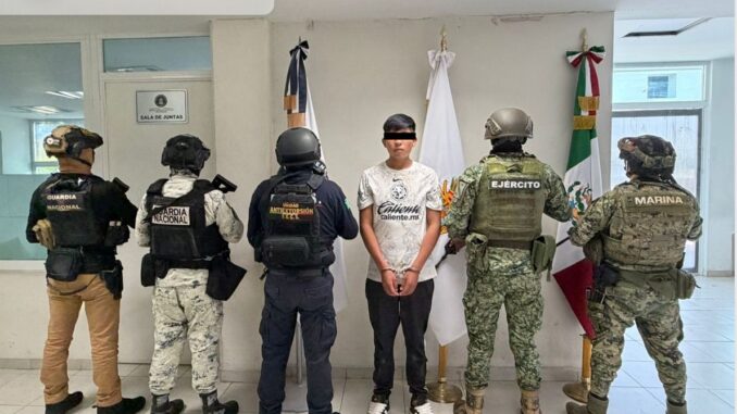 Chilpancingo, Gro., a 01 de noviembre de 2025.— La Fiscalía General del Estado de Guerrero, en coordinación con la Secretaría de la Defensa Nacional (DEFENSA), Guardia Nacional (GN), Secretaría de Marina (SEMAR), Secretaría de Seguridad y Protección Ciudadana (SSPC) y Policía Estatal, lograron la detención en flagrancia de Jesús «N», por su probable responsabilidad en el delito de extorsión, por los hechos ocurridos en Acapulco de Juárez.