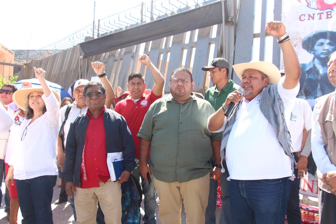 Los funcionarios acudieron al exterior del ROPEG, donde representantes del SUTCobach-Gro y sindicatos realizaron la entrega del pliego petitorio.