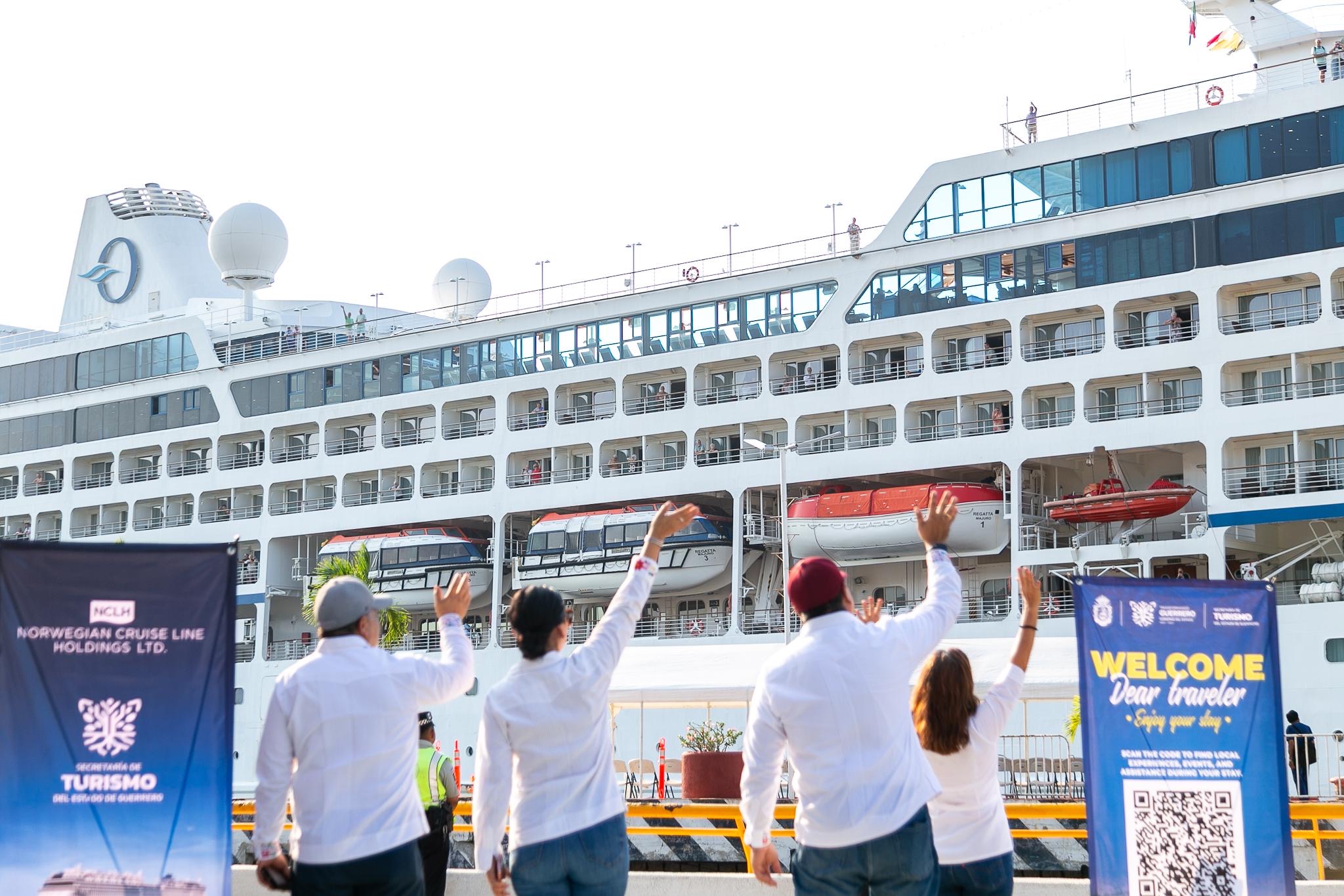 Durante la mañana de este viernes arribó al puerto de Acapulco el MS Regatta, cuarto crucero de la temporada, con 492 pasajeros y 386 tripulantes, lo que reafirma al destino como un punto estratégico del turismo de cruceros a nivel internacional.