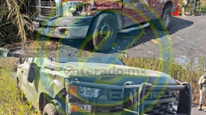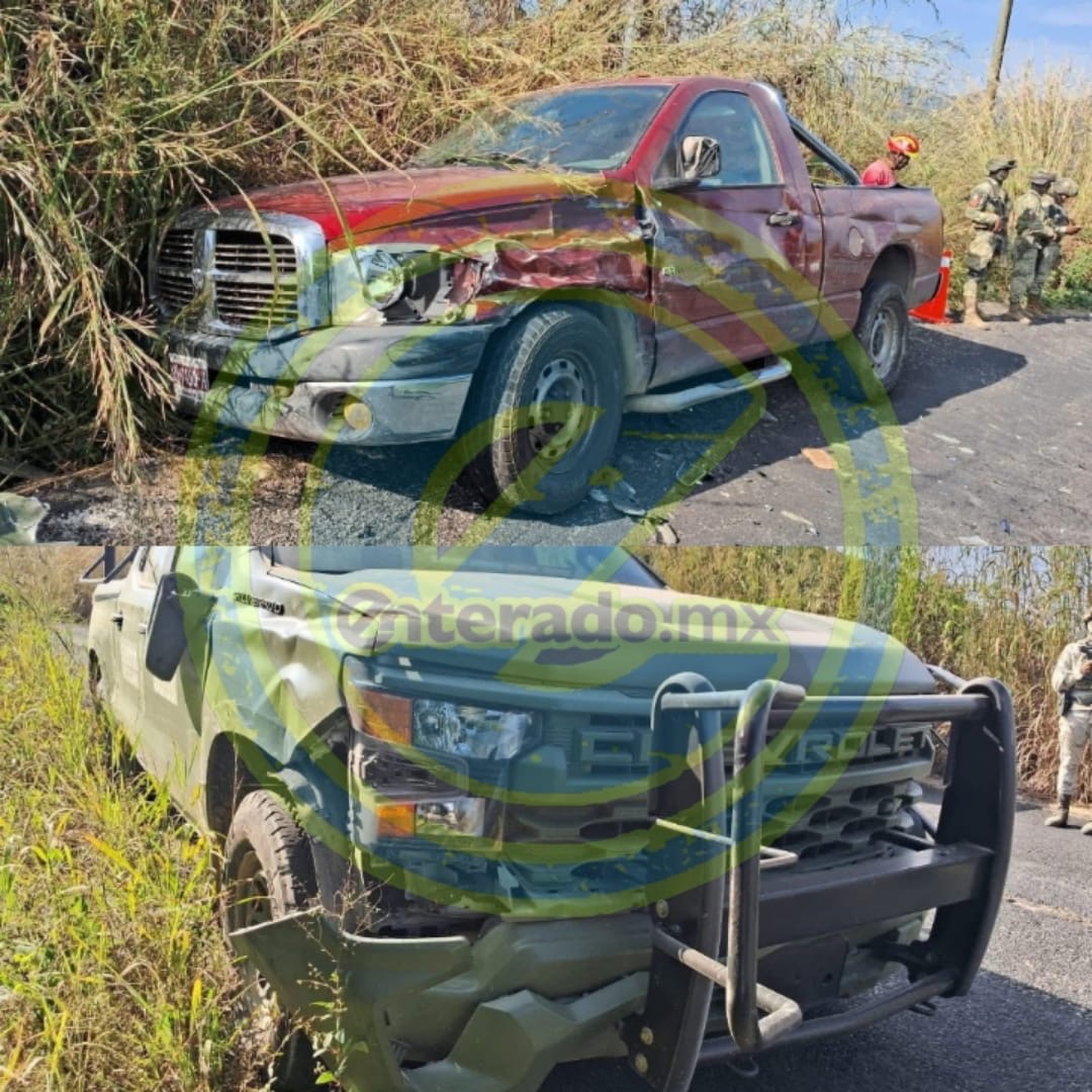 El accidente ocurrió cerca de las 14:40 horas cuando la unidad militar y la camioneta particular colisionaron, lo que provocó daños materiales en ambos vehículos.