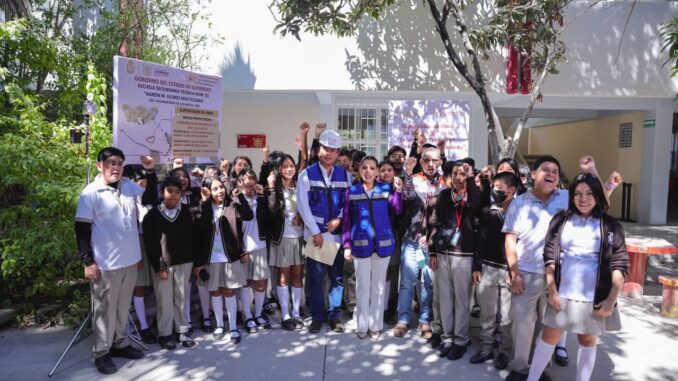 Ante la comunidad estudiantil de la Escuela Secundaria Técnica No. 81 “Aarón M. Flores Moctezuma”, la gobernadora dijo que este nuevo inmueble sustituirá la vieja estructura afectada por el sismo de 2017, la cual tuvo que ser demolida debido al deterioro que representaba un riesgo para la comunidad educativa.