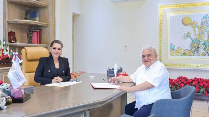 Chilpancingo, Gro., viernes 5 de diciembre del 2025.- El alcalde de Chilpancingo, Gustavo Alarcón Herrera, se reunió con la gobernadora Evelyn Salgado Pineda para informarle que el Ayuntamiento decidió llevar a cabo la Feria de Navidad y Año Nuevo, una de las festividades más importantes de la capital en su edición del Bicentenario.