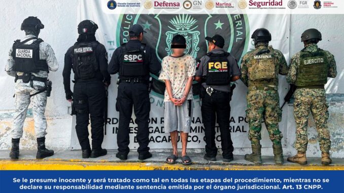 Chilpancingo, Gro., a 22 de enero de 2026.– La Fiscalía General del Estado de Guerrero informa que, en coordinación con la Secretaría de la Defensa Nacional, Guardia Nacional, Secretaría de Marina, Secretaría de Seguridad y Protección Ciudadana y Secretaría de Seguridad Pública de Guerrero, cumplimentó una orden de aprehensión en contra de Marcos “N”, por los delitos de Privación de la Libertad Personal y Homicidio Calificado, el primero en agravio de una víctima menor de edad de identidad reservada y el segundo en agravio de Luis “N”, en el municipio de Acapulco de Juárez, Guerrero.