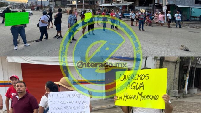 Vecinos de la colonia Hogar Moderno mantienen un bloqueo total en la avenida Ejido, a la altura de la calle Nueve en demanda del abasto de agua potable.