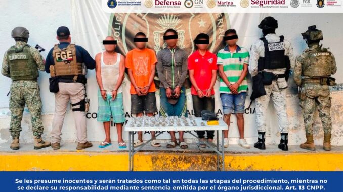 Chilpancingo, Gro., a 28 de enero de 2026.– La Fiscalía General del Estado de Guerrero informa que personal de esta institución, en coordinación con DEFENSA, Guardia Nacional (GN), Secretaría de Marina (SEMAR), Secretaría de Seguridad y Protección Ciudadana (SSPC) y Policía Estatal (SSPGro), realizó la detención en flagrancia de Jair “N”, Luis “N”, Humberto “N”, Isaac “N” y Eduardo “N”, derivado de recorridos de prevención y seguridad en la colonia Paso Limonero, municipio de Acapulco de Juárez, Guerrero.