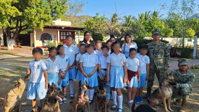 Por su parte, el personal de manejadores caninos realizó una demostración de las capacidades de los Binomios Caninos en apoyo a las operaciones de búsqueda de narcóticos y explosivos, destacando el adiestramiento especializado con el que cuenta el personal naval para contribuir a la seguridad y bienestar de la población.