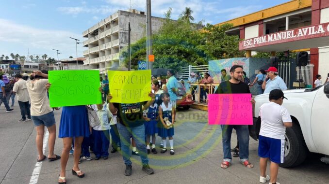 Padres de familia, alumnos y docentes de la primaria Manuel Ávila Camacho bloquearon la costera Miguel Alemán, justo afuera del plantel, para exigir la rehabilitación integral del edificio, que a pesar de haber sido intervenido en el 2021, ha presentado desperfectos.