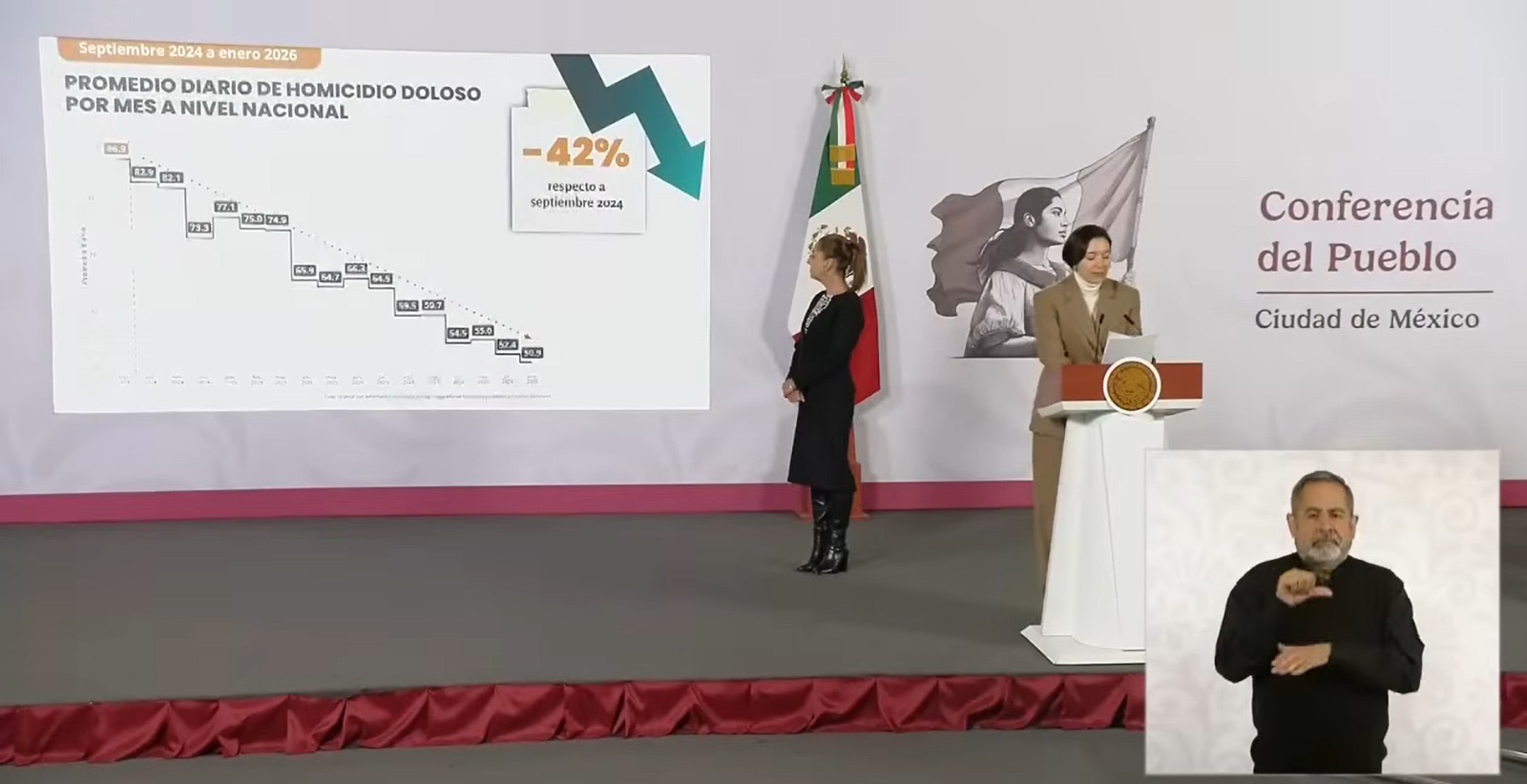Ciudad de México, 11 de febrero de 2026.- De acuerdo con datos presentados por la titular del Secretariado Ejecutivo del Sistema Nacional de Seguridad Pública, Marcela Figueroa Franco, Guerrero consolida una tendencia sostenida a la baja en el delito de homicidio doloso, al acumular 14 meses consecutivos de reducción en el promedio diario.