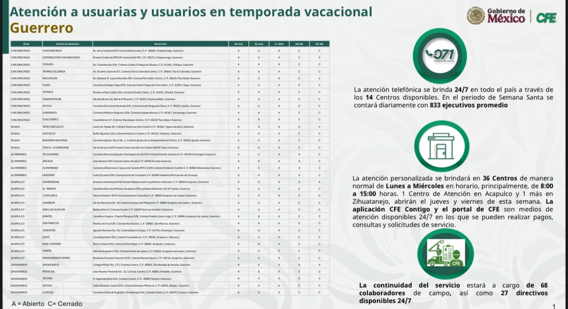 Además, reconoció el apoyo de la mandataria estatal y detalló que la atención presencial a los usuarios se realizará en 36 Centros de Atención distribuidos estratégicamente, fortaleciendo la capacidad de respuesta en el estado ante la alta afluencia de visitantes en los destinos turísticos, lo que incrementa la demanda de energía.