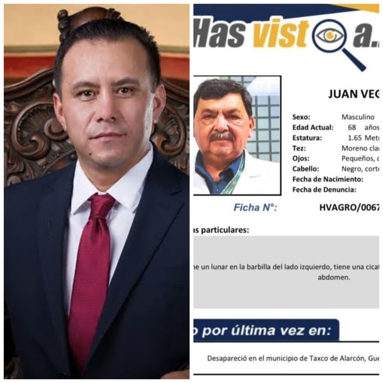 El médico Juan Vega Arredondo fue reportado como desaparecido desde el sábado 11 de abril en Taxco, y ahora se suma la privación de la libertad del edil.