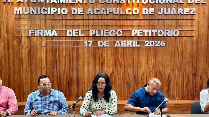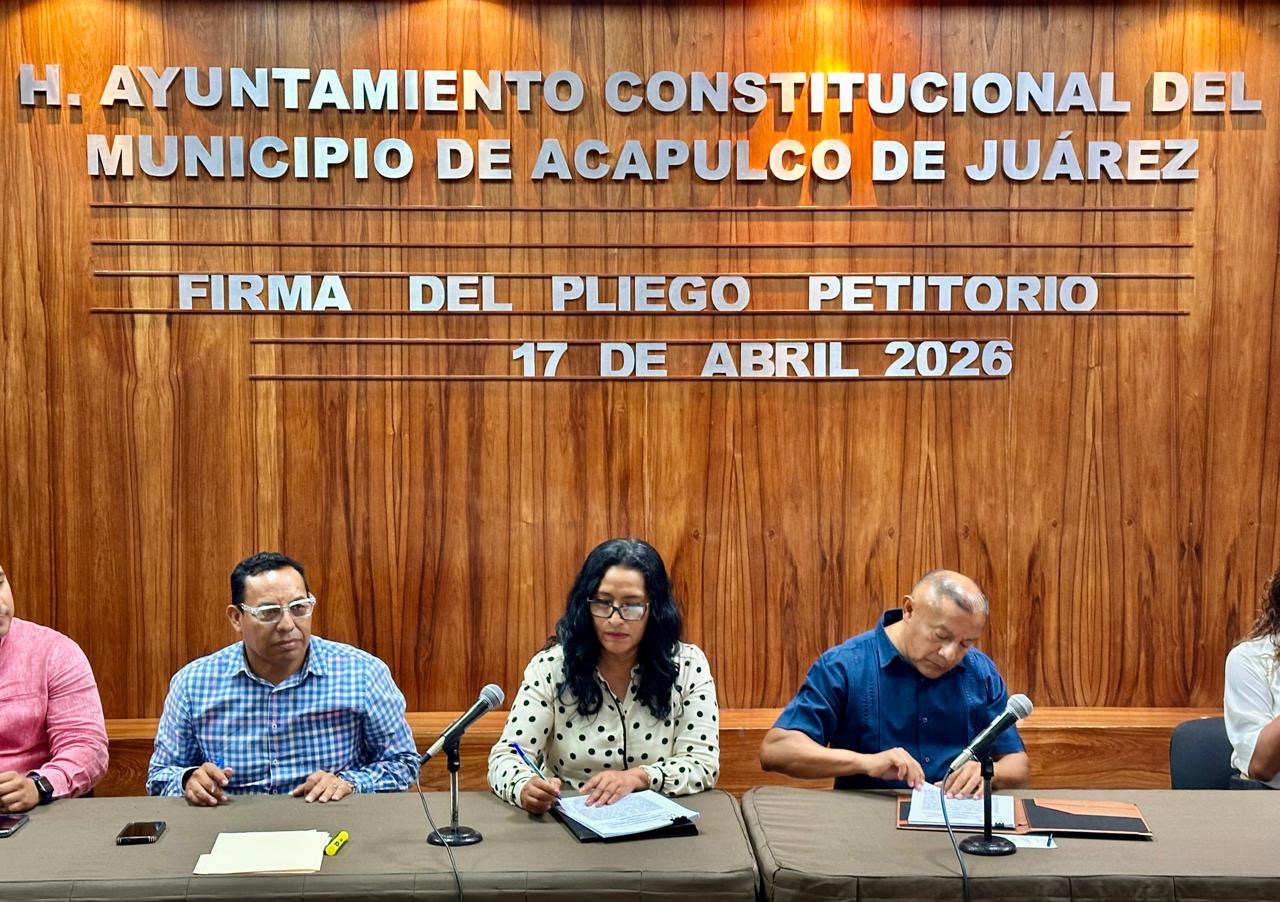 Acapulco, Gro., 17 de abril de 2026.- La presidenta municipal Abelina López Rodríguez firmó el pliego petitorio 2026 con el Sindicato Único de Servidores Públicos del Estado de Guerrero (SUSPEG), con lo que da continuidad a los acuerdos laborales con la base trabajadora y mantiene vigentes las condiciones que respaldan sus derechos y prestaciones.