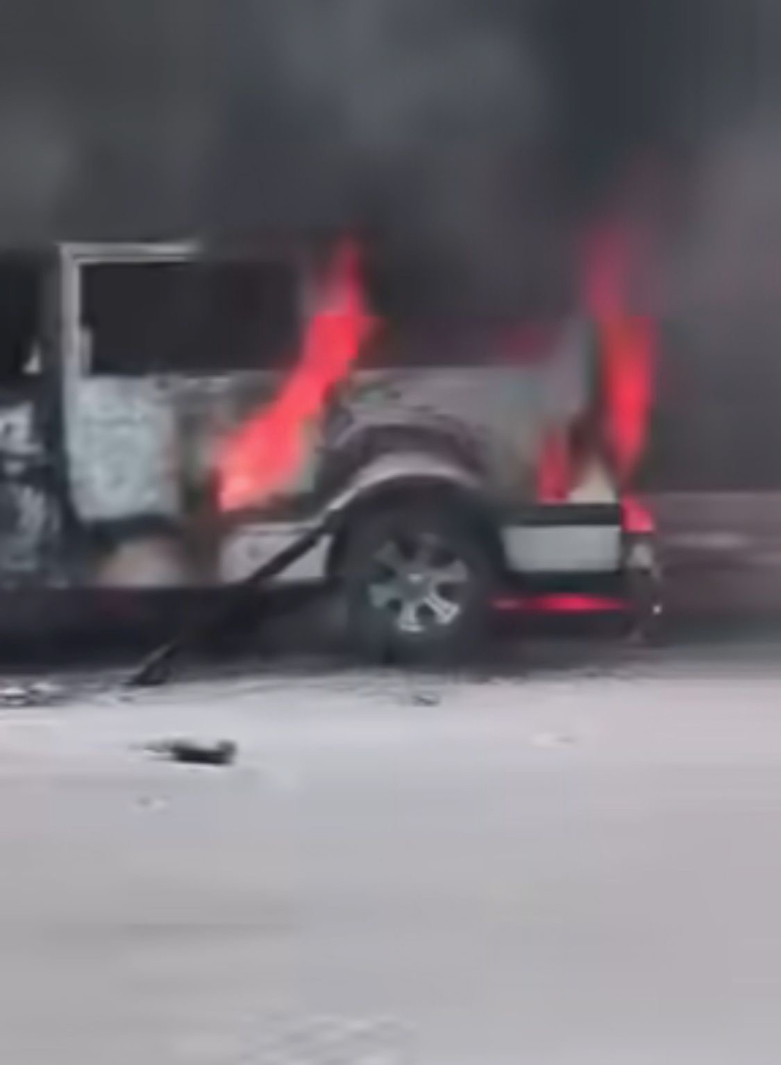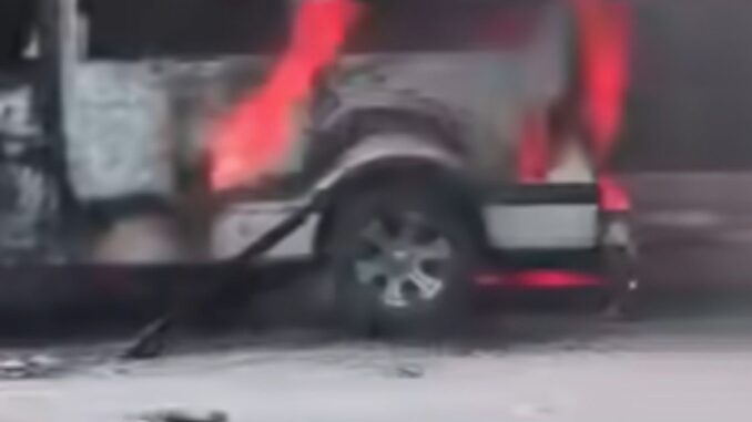 Acapulco, Gro., martes 21 de abril del 2026.- Una camioneta tipo Urvan que presta servicio de transporte público fue consumida por las llamas en la zona Diamante del puerto.